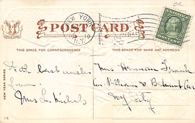 Happy New Year Year Date 1911 Postcard Postcard, Grade: 2 Size: Regular Size Postcard - approximately 3 1/2 inch x 5 1/2 inch (9 CM x 14 CM) Grading Scale: Grade 1 = Perfect corners Grade 2 = Very Minimal corne ... Read More