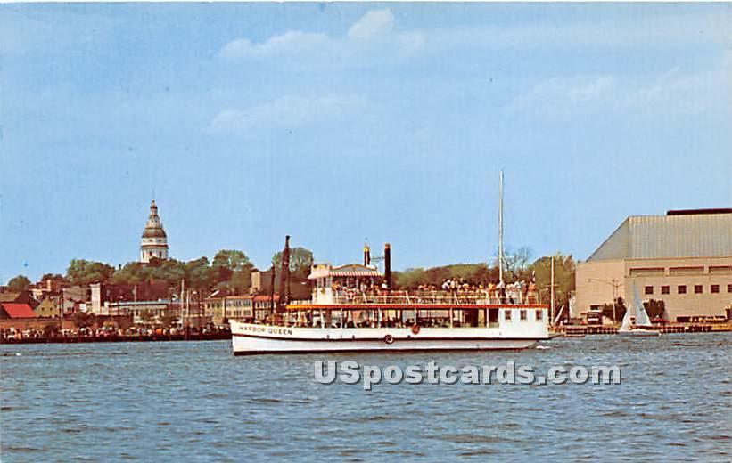 Harbor Queen in Annapolis, Maryland Postcard - Unused Grade: 1 Size: R - Regular size: Approx 3 1/2 X 5 1/2 inch (9 cm X 14 cm) Grading Scale: Grade 1 = Perfect corners Grade 2 = Very Minimal corner wear, no c ... Read More