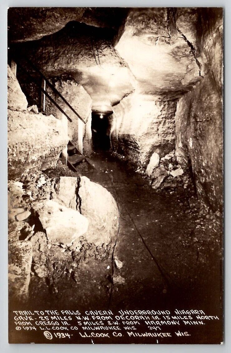 Harmony Minnesota Trail to Falls Cavern Underground Niagara Cave Postcard E24