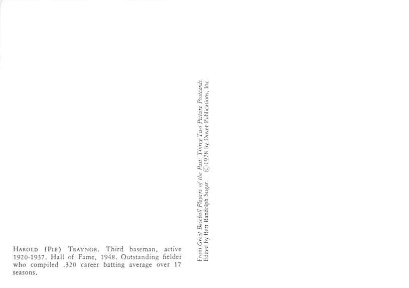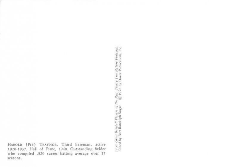 Harold (Pie) Traynor Pitcher Modern Card Baseball Postcard Postal Date: {{Product Field 4 ( Postal Used, Unused)}} Grade: 1 Size: Continental Size - approximately 4 inch x 6 inch or 10 CM x 15 CM Grading Scal ... Read More