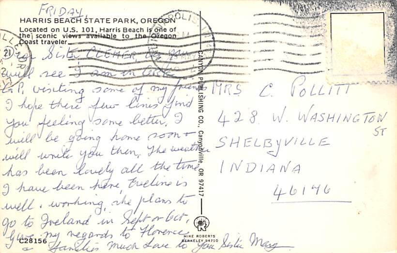 Harris Beach State Park Harris Beach State Park, Oregon OR Postcard - Postal Used Unknown, Missing Stamp Grade: 2 Size: R - Regular Size Postcard - approximately 3 1/2 inch x 5 1/2 inch (9 CM x 14 CM) Grading Sc ... Read More