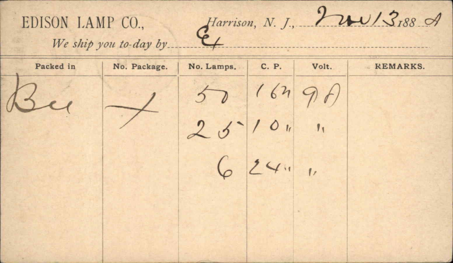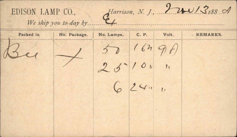 Harrison NJ Edison Lamp Co 1880s Postal Card