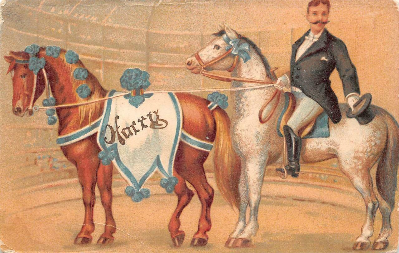 HARRY HOUDINI (?) HORSES POSTCARD (c. 1905)