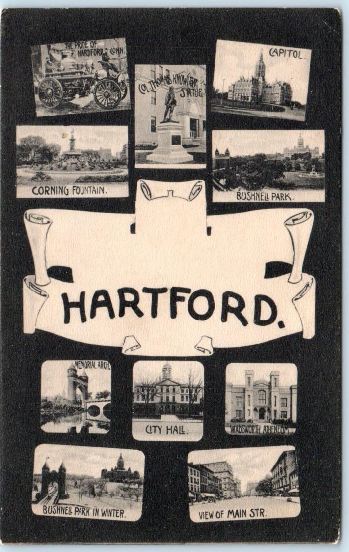 HARTFORD, Connecticut CT c1900s Multi View~Main Street, Fire Engine Postcard