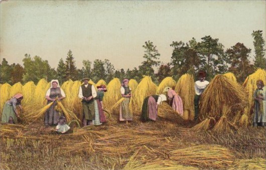 Harvest Scene People In Hay Field