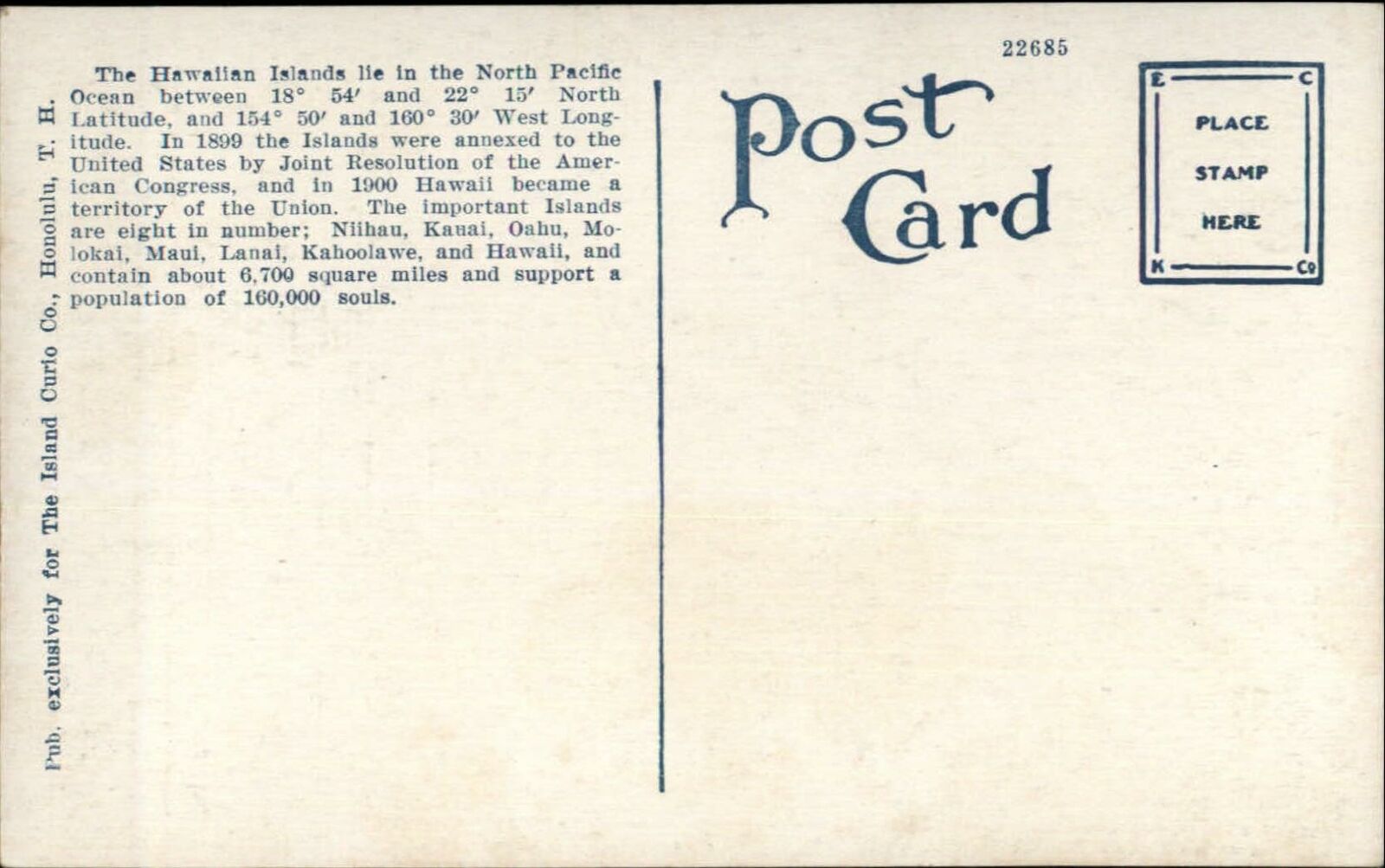 Hawaii Hawaiian Islands MAP c1915 Postcard