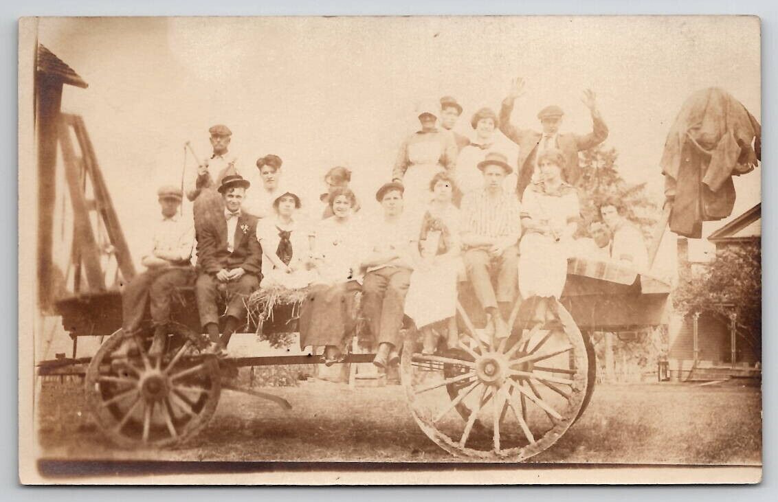 Hay Wagon Group People On the Farm RPPC c1910 Postcard D27