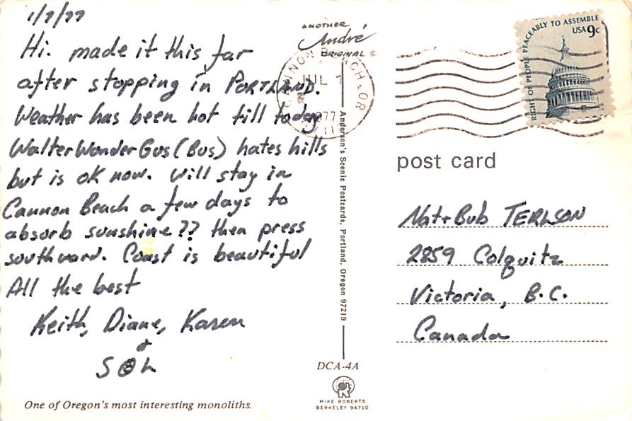 Haystack Rock - Grade: 4 - pin marks in card Category: Continental Size Postcard, Approx 4 in x 6 in (10 cm x 15.25 cm) Product Size: Continental size: 4X6 inches (10.5 cm x 15 cm) Grading Scale: Grade 1 = Perf ... Read More