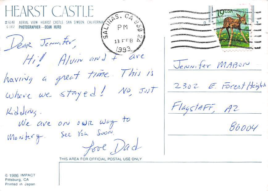 Hearst Castle, San Simeon California Postcard