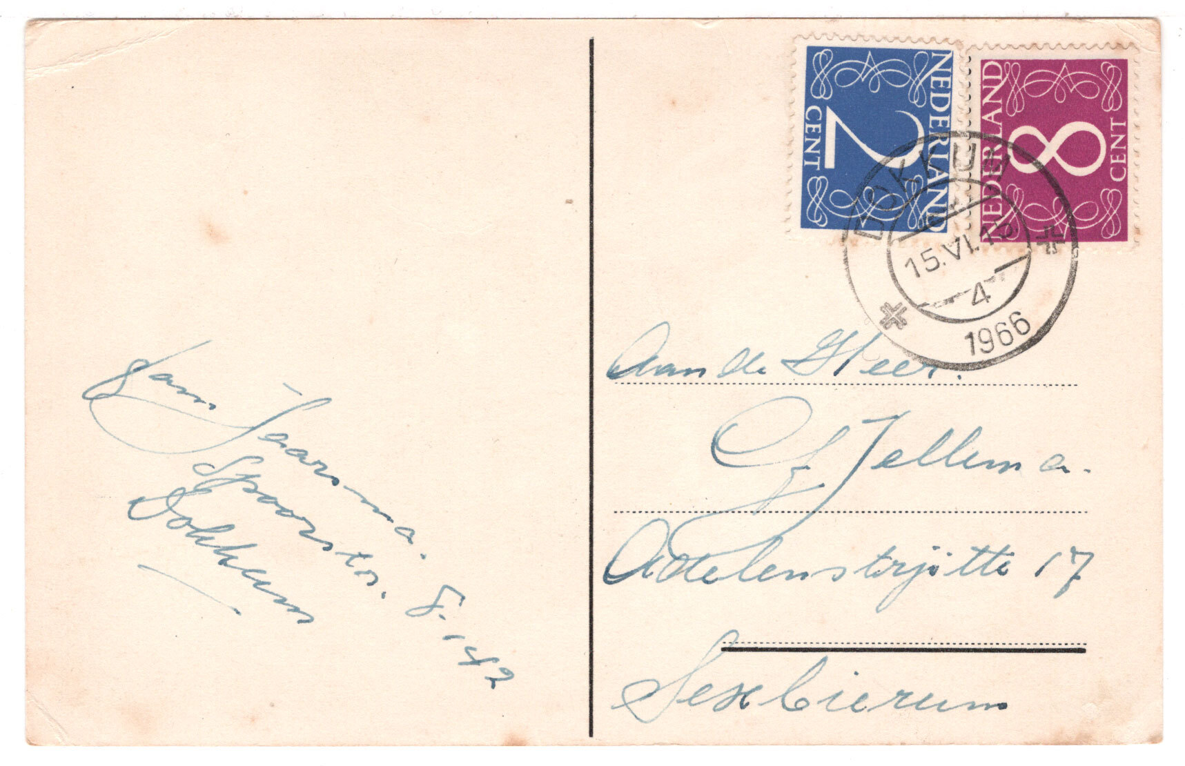 Postcards are shown from Actual Scan – Post Marked June 15, 1966 (from The Netherlands) - In Very Good Condition.