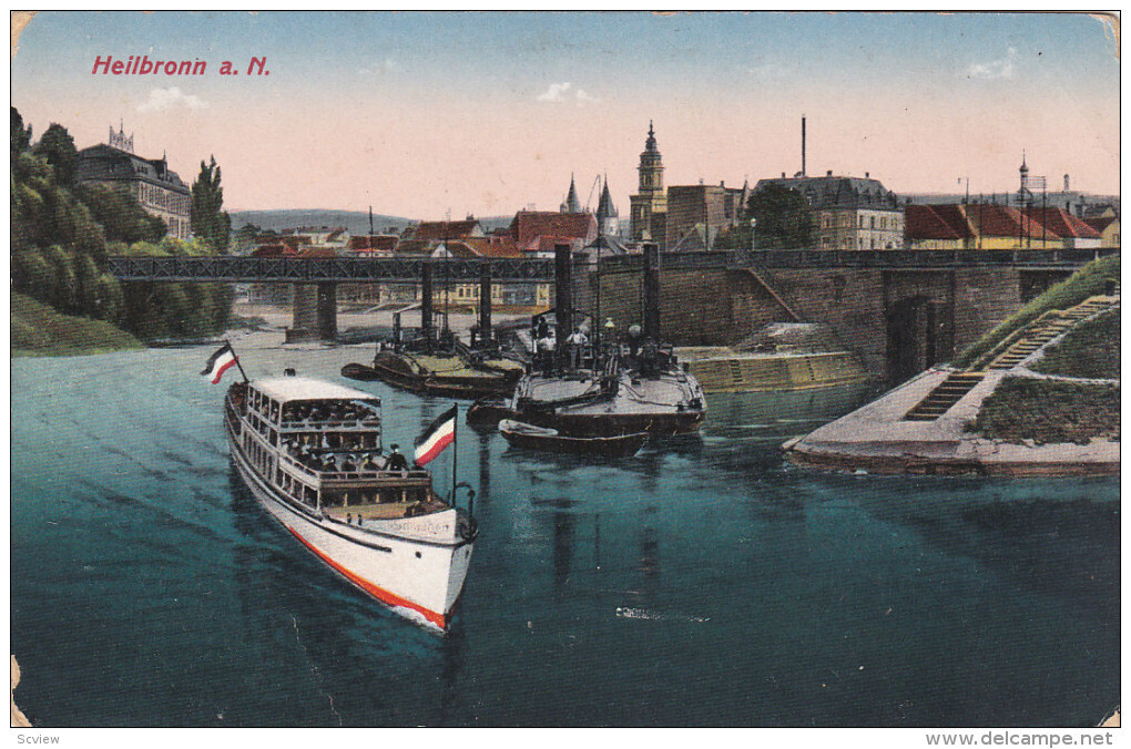 HEILBRONN, Baden-Wurttemberg, Germany, 1900-1910's; Boats, Bridge