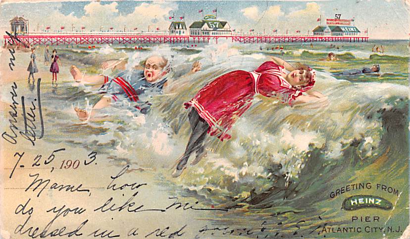 Heinz Ocean Pier Advertising Postcard 1903, Grade: 4, , Size: Regular size: Approx 3 1/2 X 5 1/2 inch (9 cm X 14 cm) Grading Scale: Grade 1 = Perfect corners Grade 2 = Very Minimal corner wear, no creases Grad ... Read More