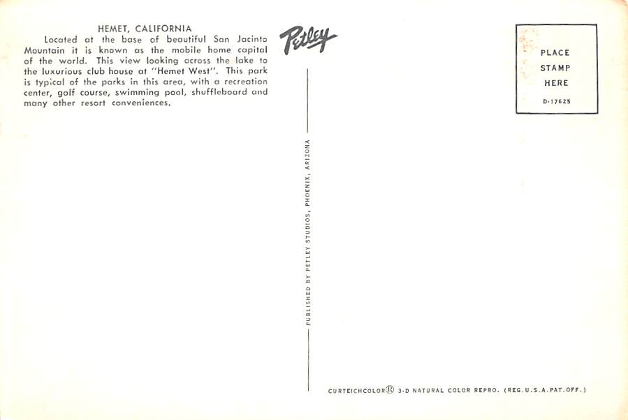 Hemet - California Continental Size Postcard, Approx 4 in x 6 in (10 cm x 15.25 cm) Continental Size: 4X6 inches (10.5 cm x 15 cm)