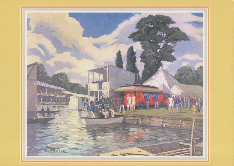 zx54 A beautiful 1980s rare postcard from Royal Mail of this painting of Henley Road Regatta and the post office on the waters edge unused and mint
