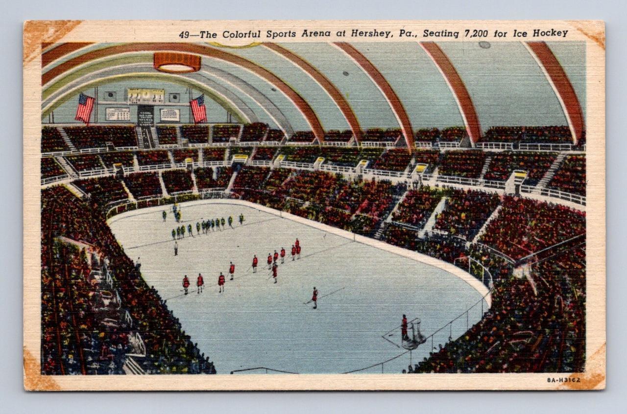 HERSHEY PENNSYLVANIA ICE HOCKEY TEAMS STADIUM POSTCARD (c.1940s)