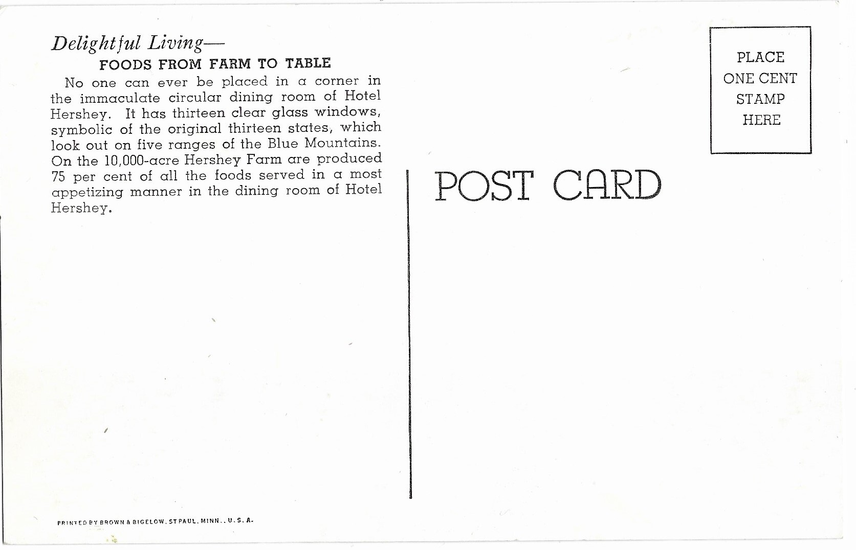 Hershey Pennsylvania, the circular dining room of the Hershey Hotel. Slight edge wear