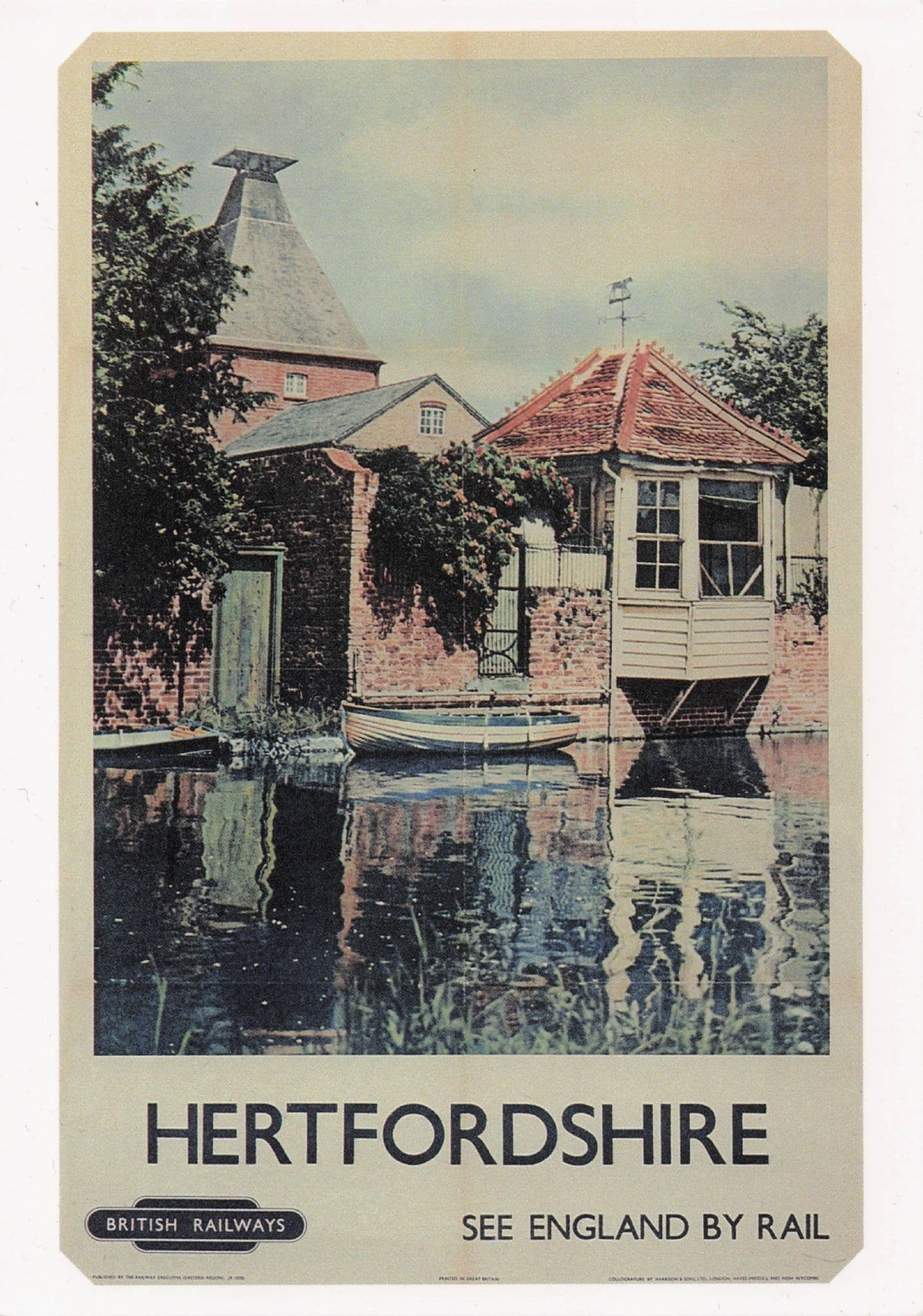 Hertfordshire British Railways Boat River Advertising Poster Postcard