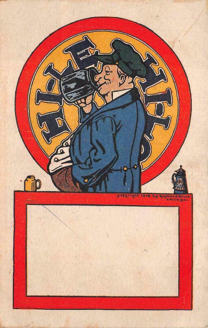 HI-LE HI-LO BEER COMIC ALCOHOL POSTCARD (c. 1907) HI-LE HI-LO BEER COMIC ALCOHOL POSTCARD (c. 1907) Click images to enlarge Description Very attractive and historic postcard showing a view of man drinking beer. (Copyright 1905 by Raymond Howe Chicago) Unsent, divided back with light corner bumping and toning. Very Fine condition. Base shipping is $3.00 domestic and $6.00 international. Purchases at/over $49.95 must be insured. All items/orders selling for over $49.95 will be based upon final sale price. Seller will combine multiple purchases. wait for an Please invoice from seller before making payment. Please take a look at my other listings. There is a clickable link to view a larger picture. The scans accurately reflect the condition yet if you have any questions please feel free to ask. Check out the store listings! Images sell!Get Supersized Images & Free Image HostingCreate your brand with Auctiva'sCustomizable Templates.Attention Sellers - Get TemplatesImage Hosting, Scheduling at Auctiva.com.Track Page Views WithAuctiva's FREE Counter