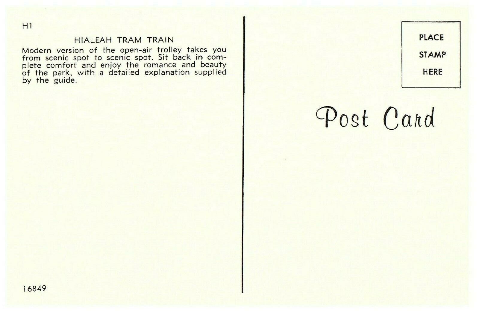 When ordering from the US, parcels may be subject to import tax and duty charges, which the buyer is responsible to pay.Hialeah Tram Train hialeah, Florida FL Original Vintage Postcard 1969This product data sheet is originally written in English.Hialeah Tram Train Hialeah, Florida FL Original Vintage Postcard 1969Hialeah Tram Train Hialeah, Florida FL Original Vintage Postcard 1969 Features Panoramic City/Region Miami Postage Condition Unposted Region Florida Modified Item No State Florida Country/Region of Manufacture United States Theme US States, Cities & Towns Era Chrome (c. 1939-present) Country USA Type Printed (Lithograph)