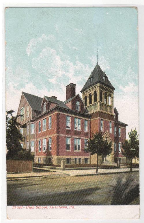 Description: High School Allentown Pennsylvania 1907c postcardType: undivided back Condition: very good+, light corner wear Any hatched effect is scanner effect, not on actual picture on card. Postal Use: used, but not mailed MORE POSTCARDS IN MY STORE - THE POSTCARD DEPOT Track Page Views WithAuctiva's FREE Counter
