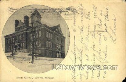 High School, Cadillac in Cadillac, Michigan Postcard - 1909 Grade: 5 - missing tip right bototm corner, tear bototm edge, corner wear Size: R - Regular size: Approx 3 1/2 X 5 1/2 inch (9 cm X 14 cm) Grading Sca ... Read More