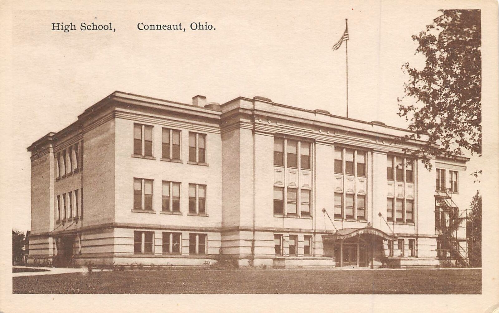 High School Conneaut Ohio 1915c postcard