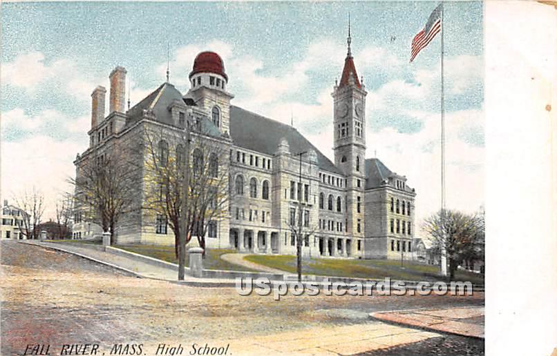 High School - Fall River, MA Postcard - Unused Grade: 2 Size: R - Regular size: Approx 3 1/2 X 5 1/2 inch (9 cm X 14 cm) Grading Scale: Grade 1 = Perfect corners Grade 2 = Very Minimal corner wear, no creases ... Read More