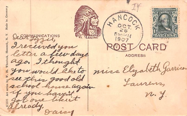High School Hancock, New York Postcard Hancock NY Year date of postcard, or postal used / year used: 1907 Grade: 2 Size: R Type: 4 High School in Hancock, New York vintage postcard from our collection of ove ... Read More