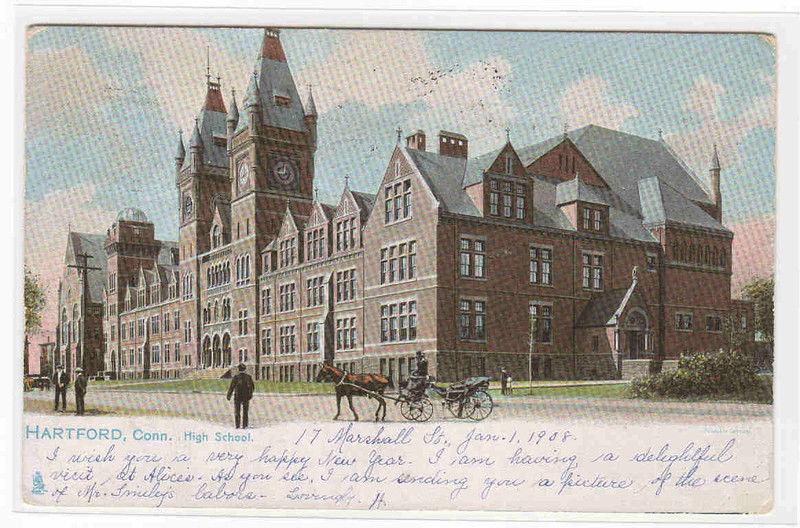 Description: High School Hartford Connecticut 1908 Tuck postcard Type: undivided back Condition: very good+, light corner wear Any hatched effect on pic is scanner effect, not on postcard. Postal use: used, posted 1908 MORE POSTCARDS IN MY STORE - THE POSTCARD DEPOT Track Page Views WithAuctiva's FREE Counter