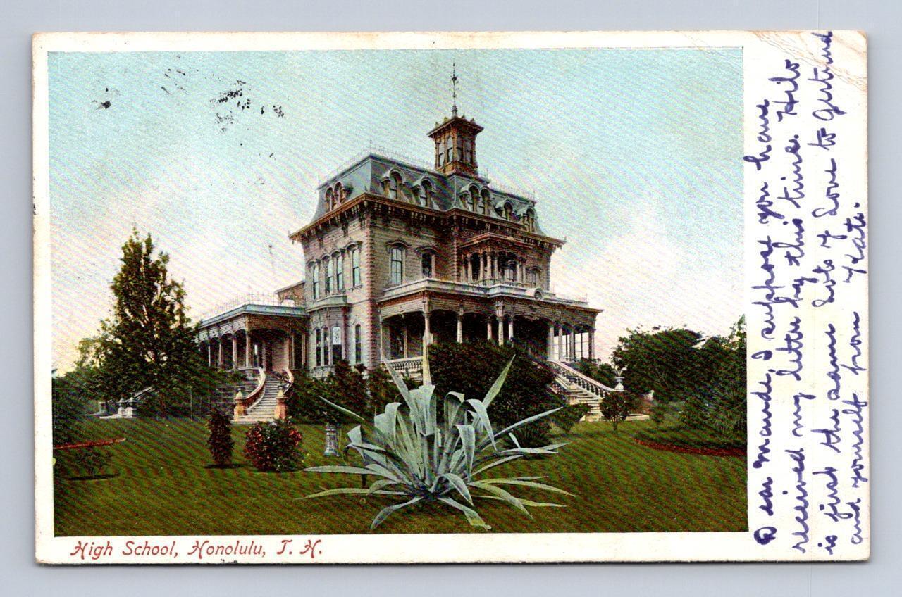 HIGH SCHOOL HONOLULU HAWAII POSTCARD 1908 ###