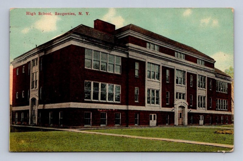 HIGH SCHOOL SAUGERTIES NEW YORK POSTCARD 1912