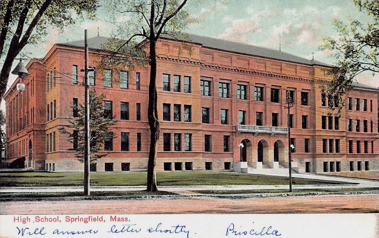 High School, Springfield, Mass., Very Early Postcard, Used in 1909
