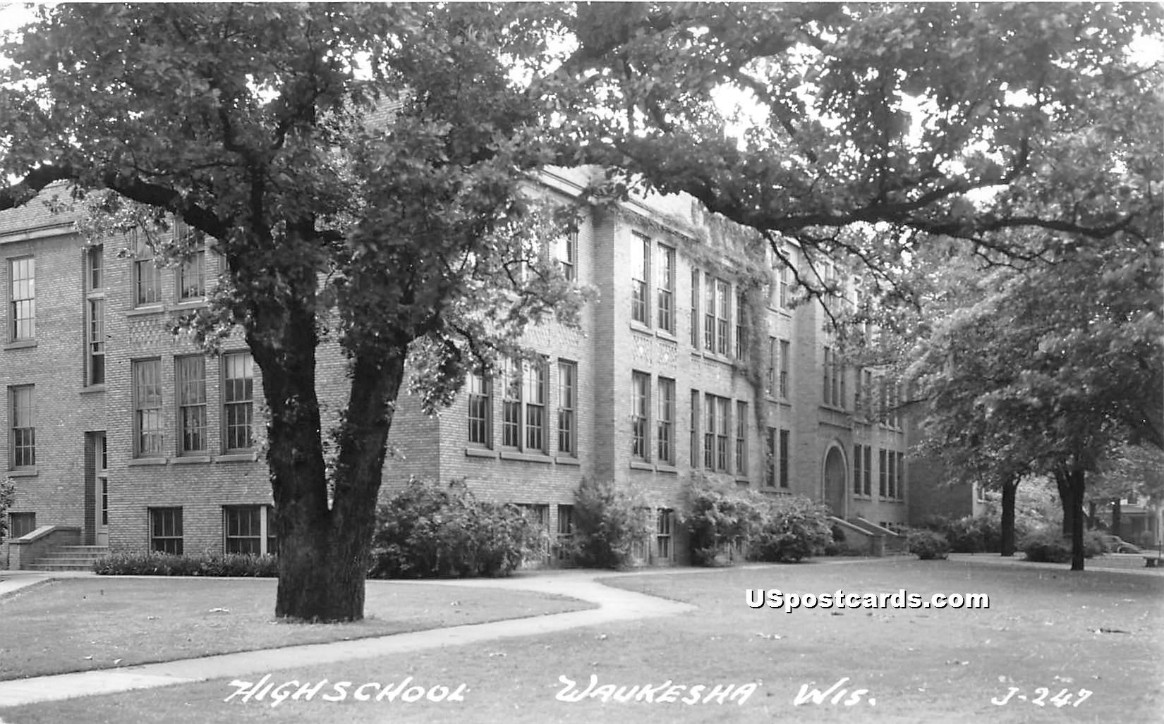 High School - Waukesha, Wisconsin Postcard - Unused Grade: 1 Size: R - Regular size: Approx 3 1/2 X 5 1/2 inch (9 cm X 14 cm) Grading Scale: Grade 1 = Perfect corners Grade 2 = Very Minimal corner wear, no cre ... Read More