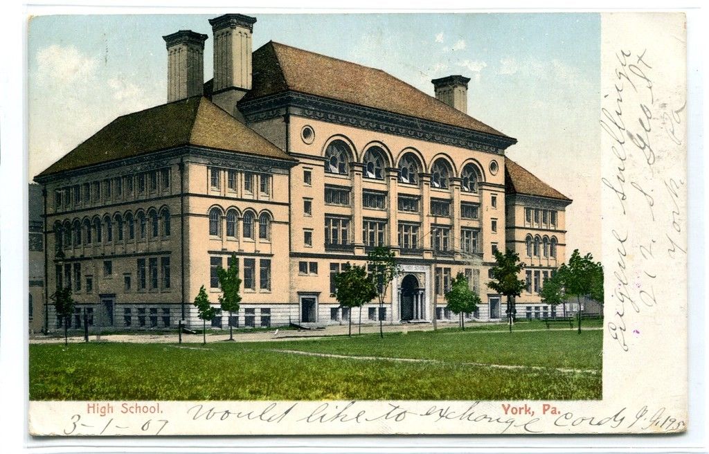 Description: High School York Pennsylvania 1907 postcard Type: undivided back Condition: excellent, light corner wear. Any hatched effect is scanner effect, not on actual picture on card. Postal Use: used, mailed 19 ... Read More