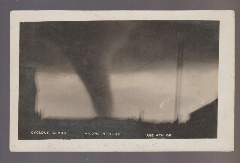 Hildreth NEBRASKA RPPC 1908 TORNADO TOUCHING DOWN! Twister CYCLONE Disaster NE
