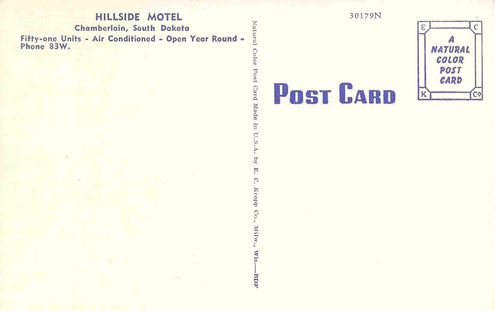 Hillside Motel Chamberlain South Dakota linen postcard