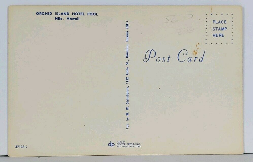 Hilo Hawaii Orchid Hotel Pool Postcard K17