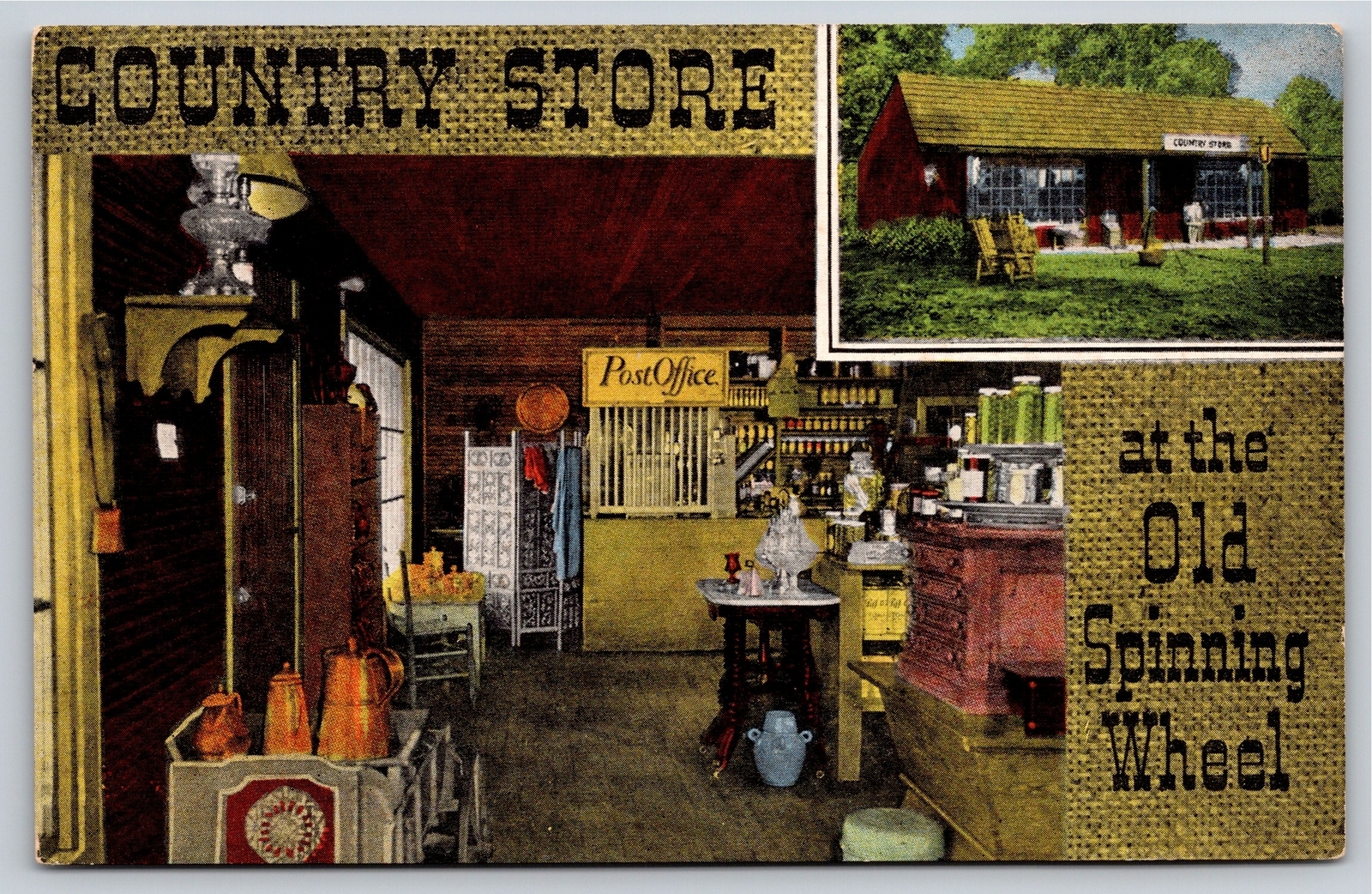 Hinsdale Illinois~Country Store @ Old Spinning Wheel~Vintage Linen Postcard