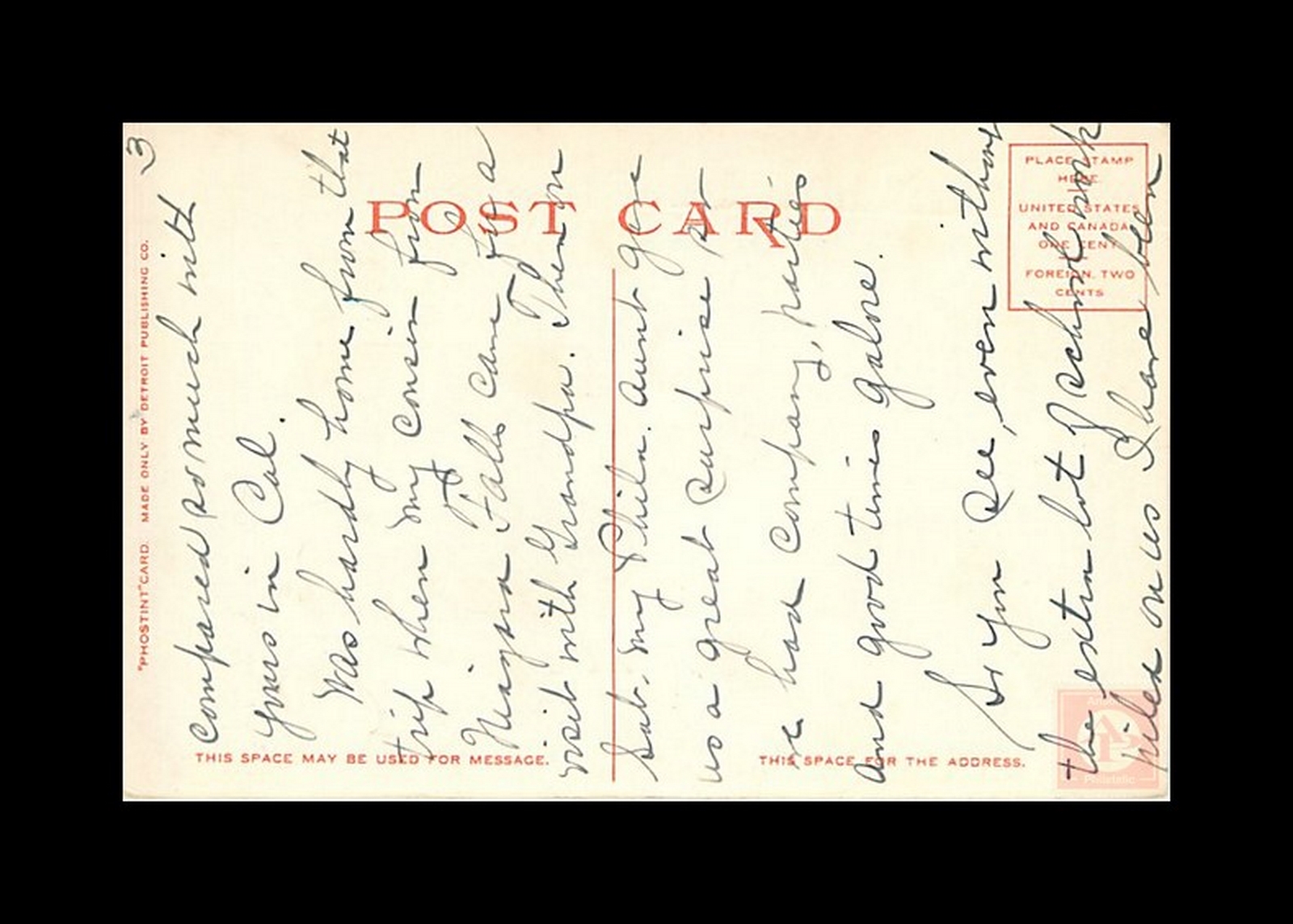 Some scans of postcards result in colored streaks which are a result of the error in scanning and not a fault of the postcard.