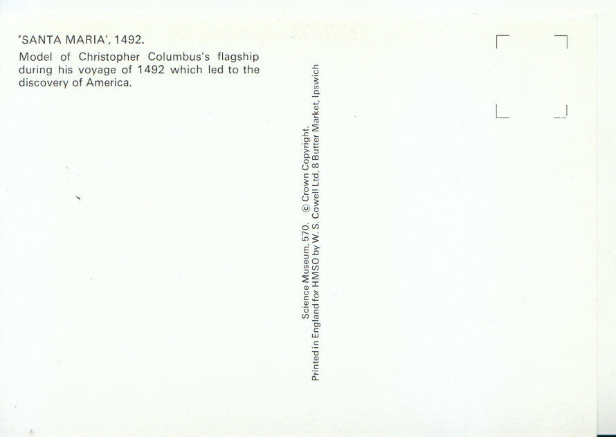 Mo's PostcardsPostcard Description: Historic Ships Postcard - 'Santa Maria, 1492 - Model of Christopher Columbus's Flagship ________ Genealogy Information: ______ Defects: __ Postage & Payment: For U.K ... Read More