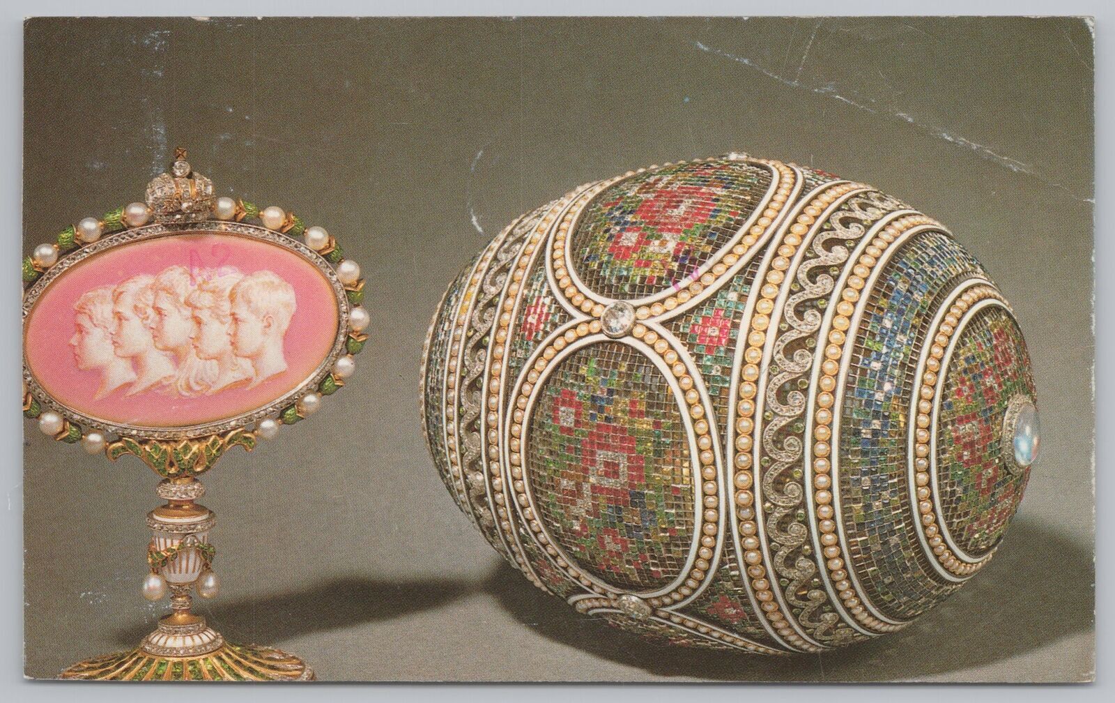 Holiday~Faberge Egg & Faces On Placard~Vintage Postcard