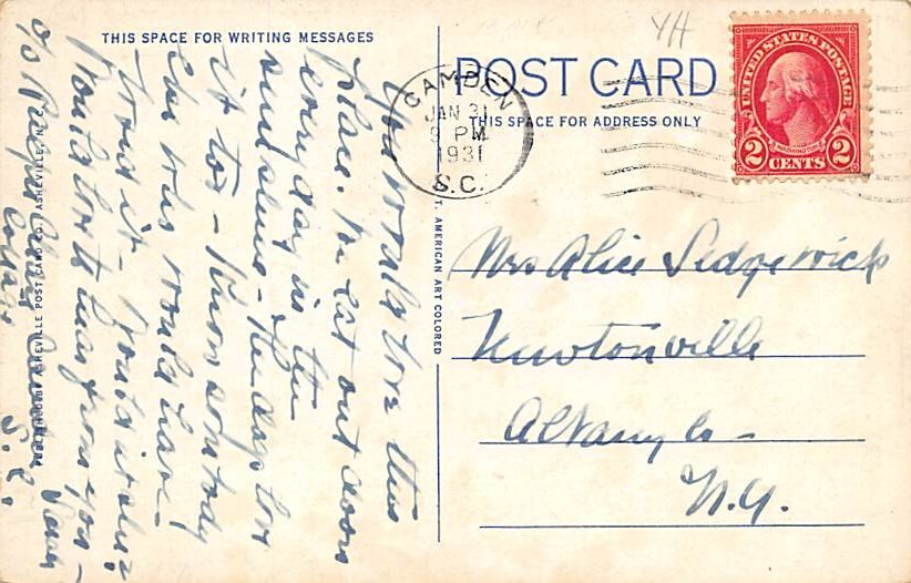 Holly Hedge Camden, South Carolina Postcard - 1931
