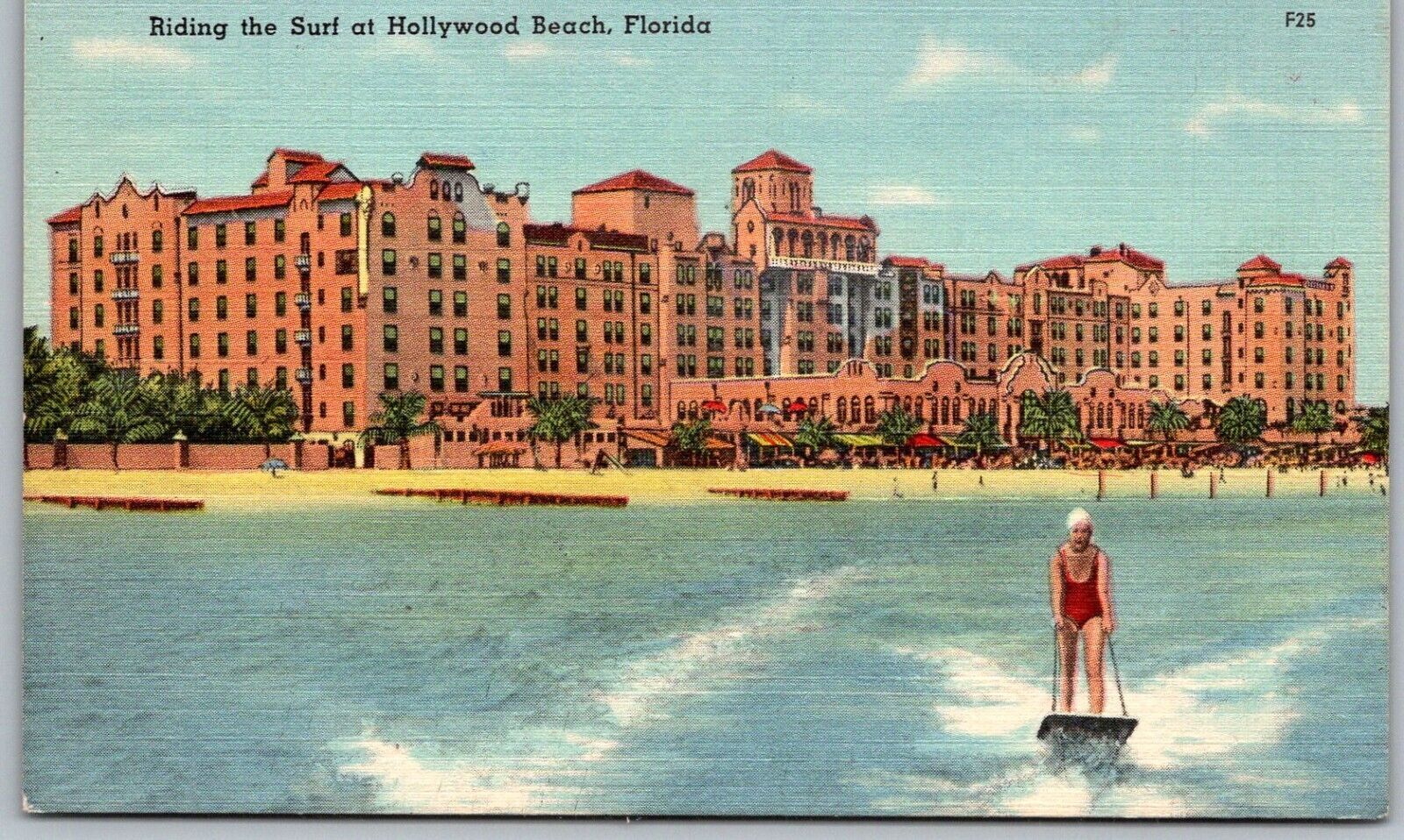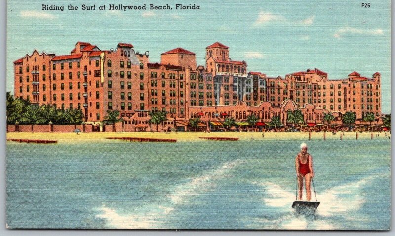 Hollywood Beach Florida 1940s Postcard Riding The Surf