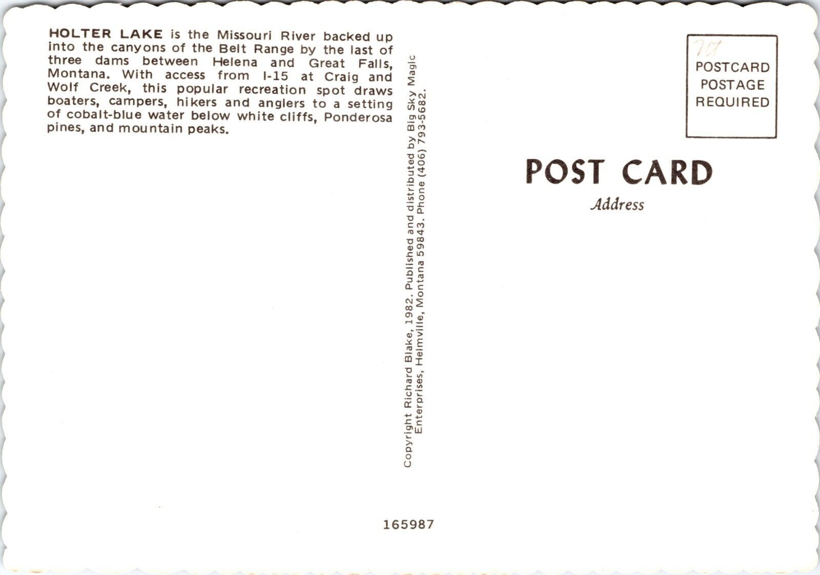Holter Lake, Missouri River, Belt Mountain Range MT POSTCARD