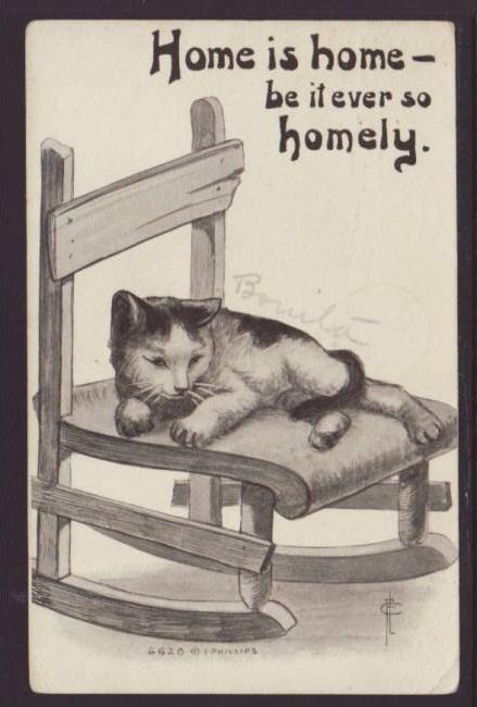 Home Is Home,Cat in Chair,Comic,Phillips Postcard