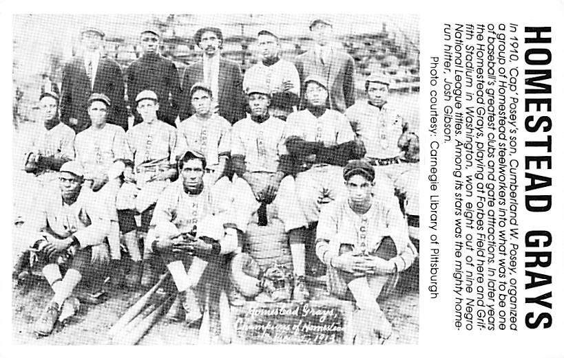 Homestead Grays Baseball Players View Postcard Backing