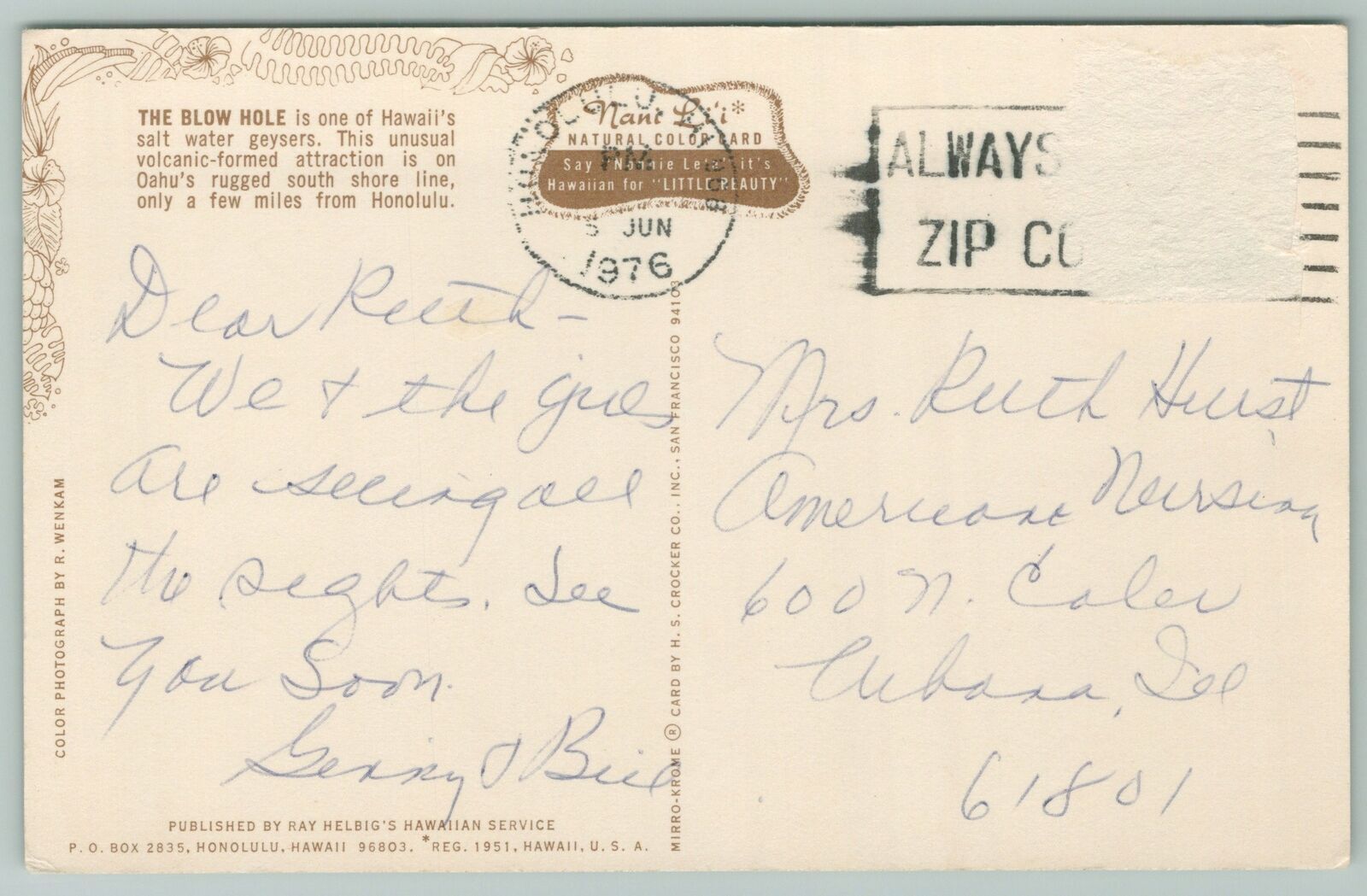 Honolulu Hawaii~The Blow Hole Salt Water Geyser~Standard Chrome Postcard