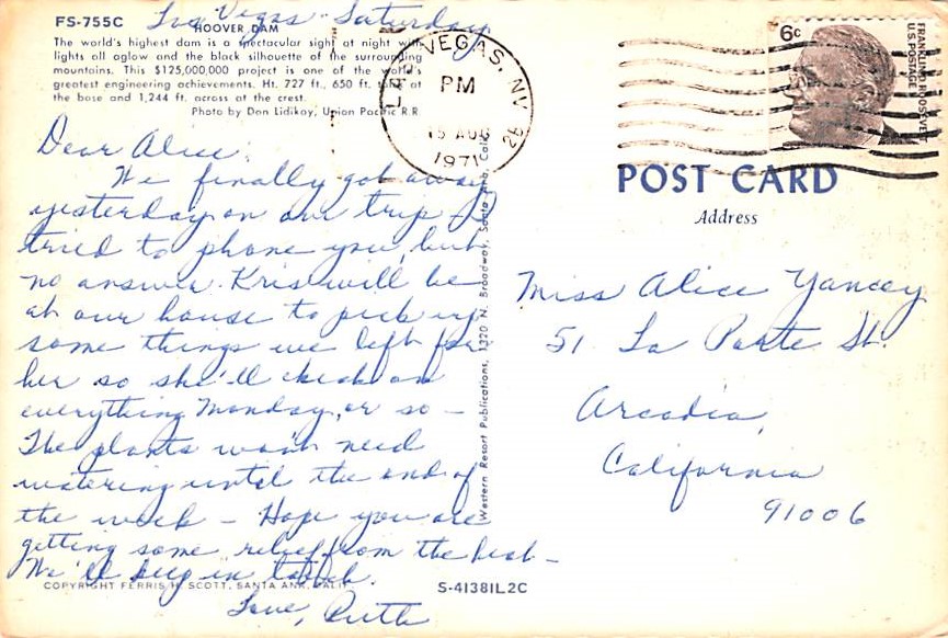 Hoover Dam - Las Vegas, Nevada Grade: 3 Category: Continental Size Postcard, Approx 4 in x 6 in (10 cm x 15.25 cm) Product Size: Continental size: 4X6 inches (10.5 cm x 15 cm) Grading Scale: Grade 1 = Perfect ... Read More