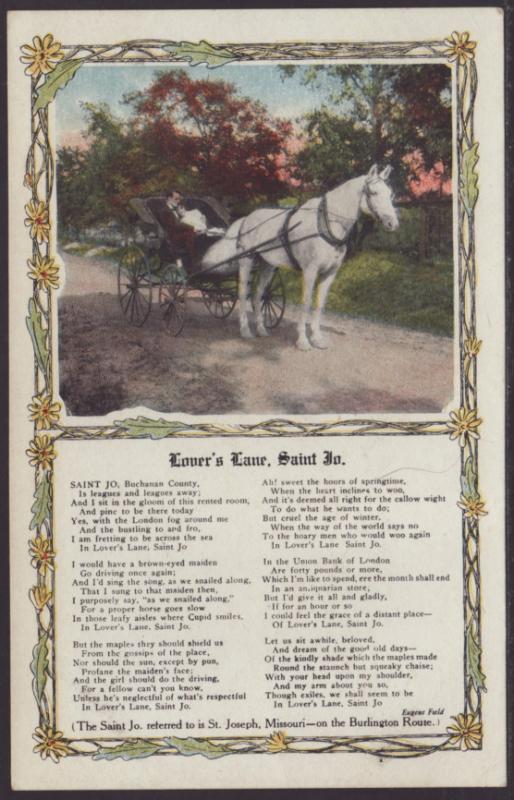 Horse Cart,Lover's Lane,Saint Joseph,MOÂ Postcard