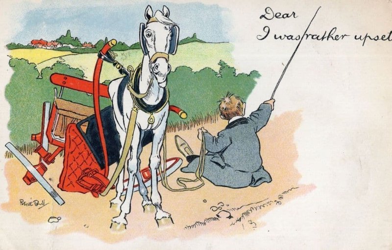 Horse & Rider Crash Disaster Old Comic Postcard